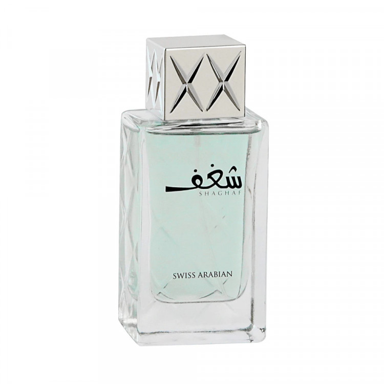 Shaghaf Men de Swiss Arabian é um perfume Aromático Aquático Masculino. As notas de topo são Laranja Chinesa, Lavanda e Limão as notas de coração são Cardamomo, Notas Oceânicas, Canela, Sálvia, Nagarmota ou Óleo de Cipriol e Tagetes as notas de fundo são Pralinê, Tolú Bálsamo, Jacarandá, Árvore de Ébano, Patchouli ou Oriza e Âmbar Negro.